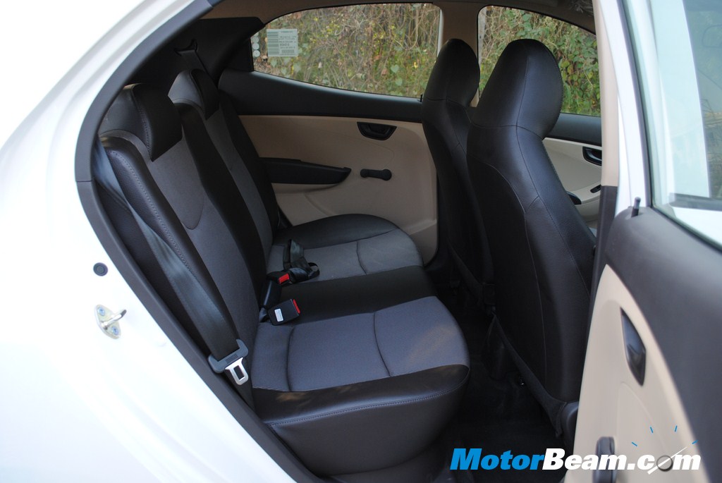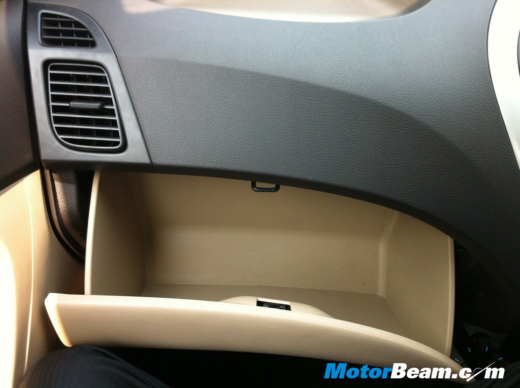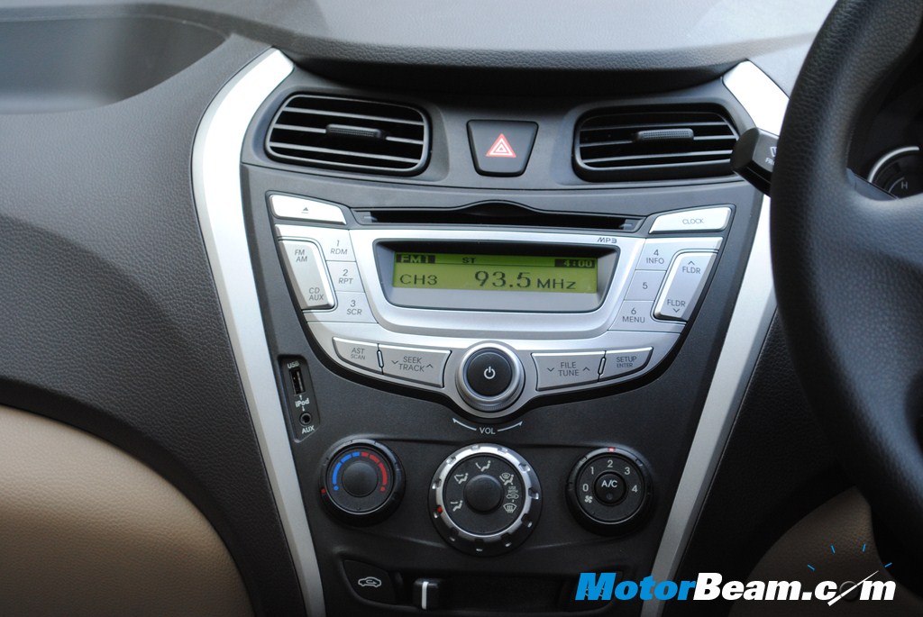 Interiors – The picture tells the story but its my job to elaborate. Interiors are by far the best in the segment, never before have we seen such good quality interiors in a car which sits in this particular price point, infact it can put cars much higher up the segment to absolute shame. Get inside and the Hyundai Eon oozes of quality, feel fresh interiors, great plastic quality and the 2 tone beige and greyish black combination just enhances the appeal. No uneven panel gaps and fabulous fit and finish. It wont be out of place to mention that the Alto, the largest selling car in the segment, does not even come close to matching the quality. The hexagonal theme is carried onto the dashboard, which has a futuristic sporty design. A large storage area is placed above the glove box for odds and ends.