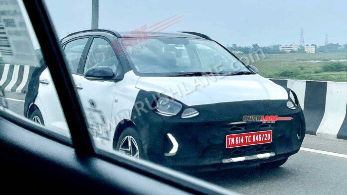 Hyundai Grand i10 Nios facelift spotted testing for the first time in India. The prototype hatchback is partly camouflaged hiding the front and rear profile of the car.