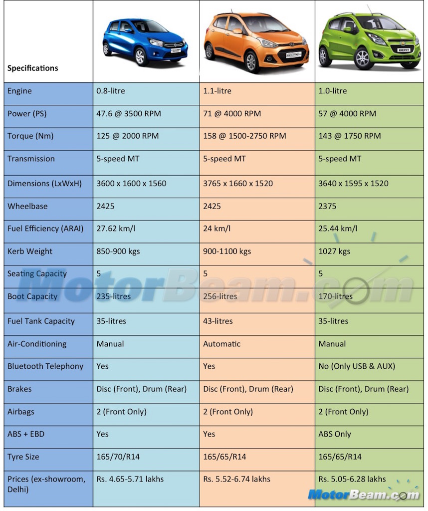 The Celerio gets a significant pricing advantage which makes the Beat under equipped and Grand i10 expensive