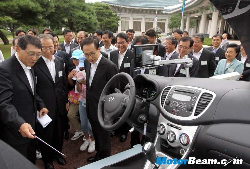 Hyundai has unveiled the company’s and Korea’s first Full Speed Electric Vehicle (FSEV) named ‘BlueOn,’ opening a new era in eco-friendly technology. Hyundai invested a total of about 40 billion won over a one year period to create BlueOn, which is based on the i10. The electric version of i10 was first unveiled at the Frankfurt Motor Show in 2009 and was showcased at the 2010 Auto Expo in Delhi. The Blueon won’t make it to India but the soon to be launched i10 facelift will look exactly like the Blueon. So here you go, these are the pictures of the upcoming Hyundai i10 facelift.