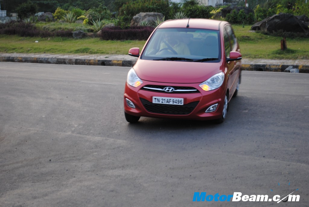 Ride, Handling and Braking – Hyundai has opted for a stiffer front suspension setup and a soft rear suspension. This translates into a relatively more comfortable ride at the rear but overall its a comfortable bet. The i10, by virtue of its ultralight steering is nimble, sure footed and extremely easy to maneuver in city traffic conditions. The i10 turns in easily and the steering gives you enough feedback at high speeds too.