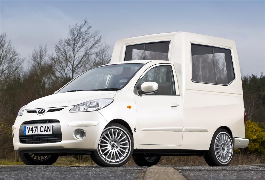 Other conversions currently being developed include a pink 32-foot stretched i10 limo being built for Ben Datroof, lead singer of top-selling Dutch boy band Pork Pie. The band’s manager, Mick Etayk, said “The Hyundai will be particularly appropriate transport for Pork Pie. There are five boys in the band, so they’ll have ten eyes in an i10!”