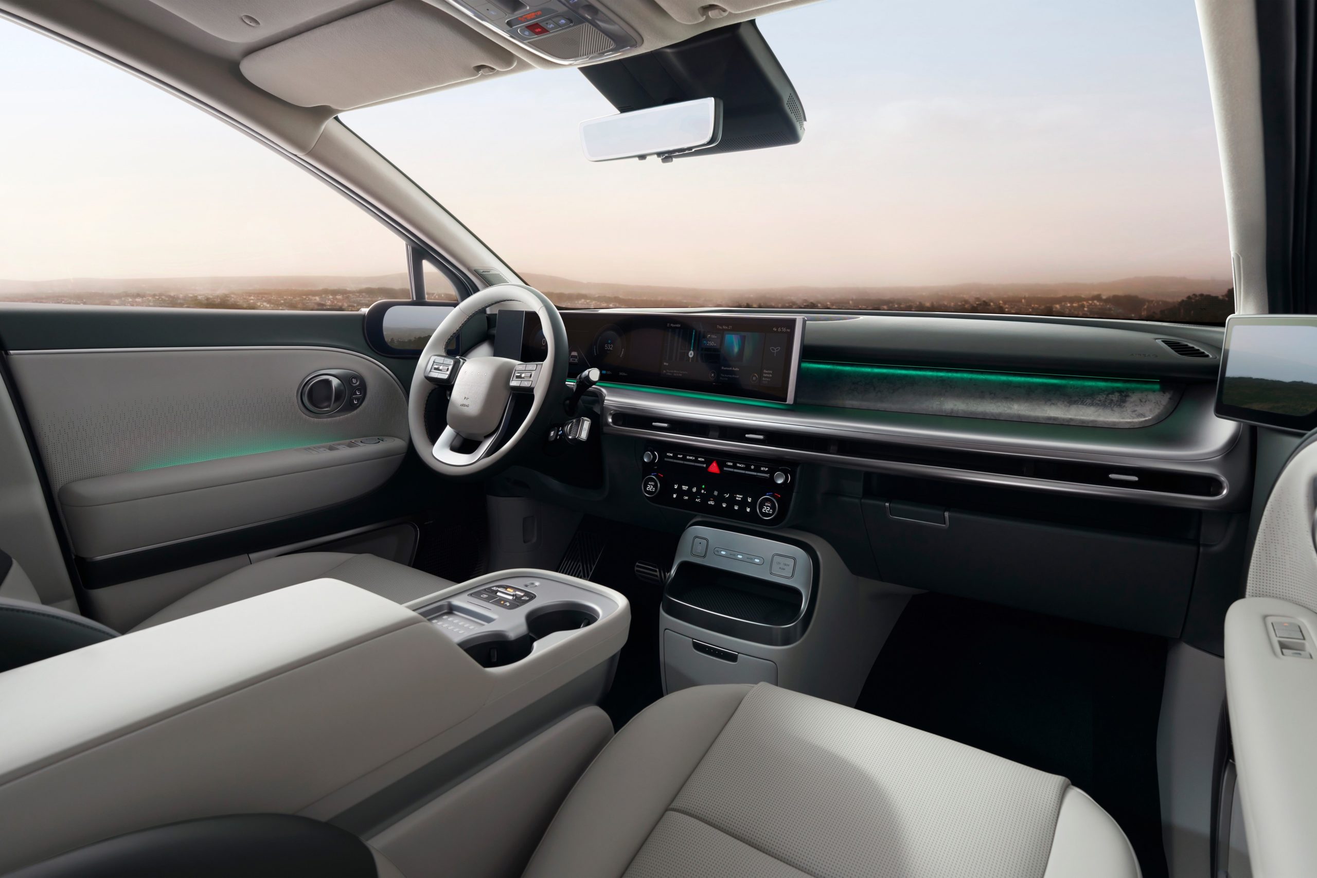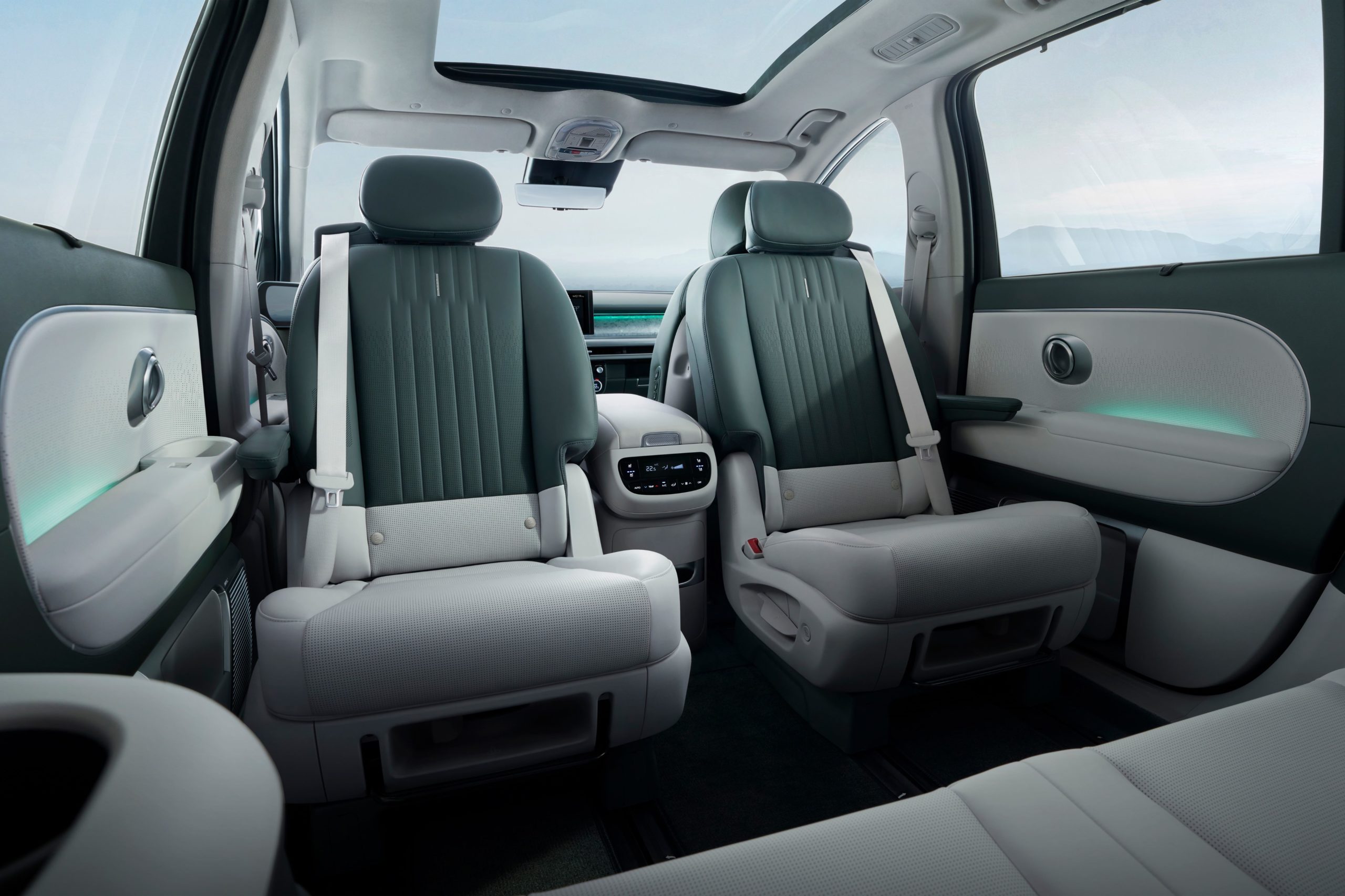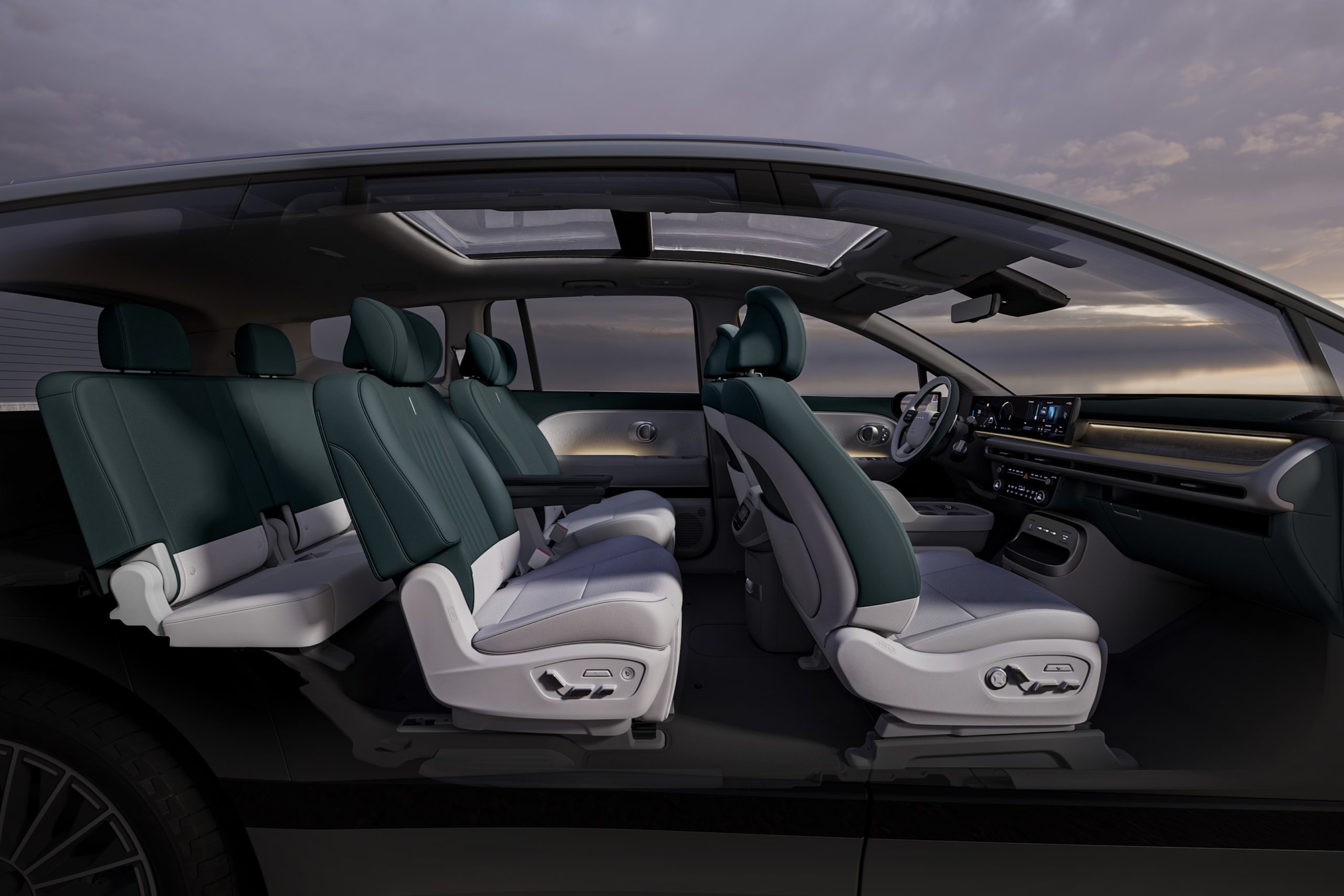 Designed to offer unmatched comfort, the IONIQ 9’s interior accommodates seven passengers in a spacious, three-row layout. The cabin emphasizes sustainability with premium, eco-friendly materials, creating a luxurious and environmentally conscious experience. Advanced technology, such as a large touchscreen infotainment system and customizable ambient lighting, enhances convenience and entertainment.