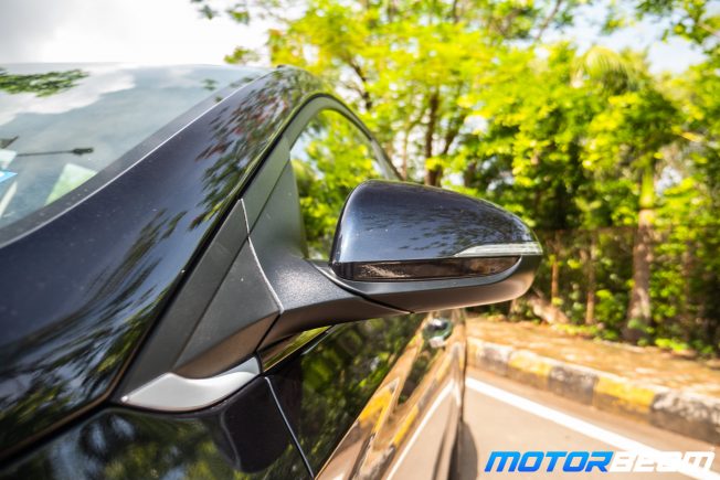 With the Turbo variant, you get a gloss black finish on the front grille, OVRMs, shark fin antenna. The rear bumper also gets a honeycomb-like styling treatment. You also get twin-tip exhaust in the Turbo variant.