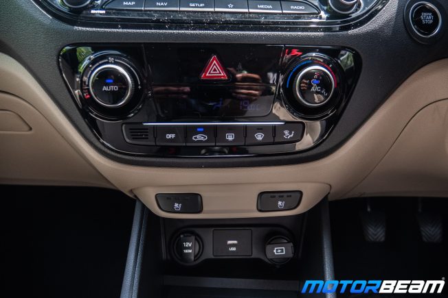 The Verna gets black and beige dual-tone treatment interiors. The Turbo variant gets all-black interiors with red accents for the sporty appeal. The overall quality of the cabin is nice, but it uses shiny hard plastics which might not feel premium. The infotainment screen is an 8-inch free-standing touchscreen. The touch response is good and is also crisp to read. The infotainment comes paired with a 6-speaker Arkamys sound system. It gets Apple CarPlay, Android Auto, Bluetooth, & USB connectivity. The Verna comes with Hyundai’s BlueLink application with Vodafone-Idea eSim making this a connected car. The instrument cluster gets a fully digital display. The display looks nice, but as there are no needles it is difficult to read sometimes. Other features include ventilated front seats, sunroof, smart trunk, push-button start/stop, automatic AC, wireless phone charger, cooled glove box, cruise control, driver rearview monitor, auto-dimming IRVM, and much more.