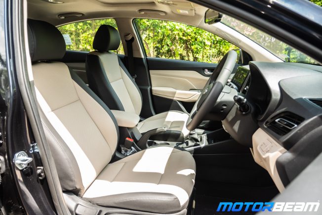 The front seats of the Verna are nice and provide a good amount of support. But the biggest disadvantage of the Verna is its rear-seat space. Space is even less compared to some of the compact sedans. The legroom is not great, and the seat isn’t wide enough for three peoples to sit comfortably.