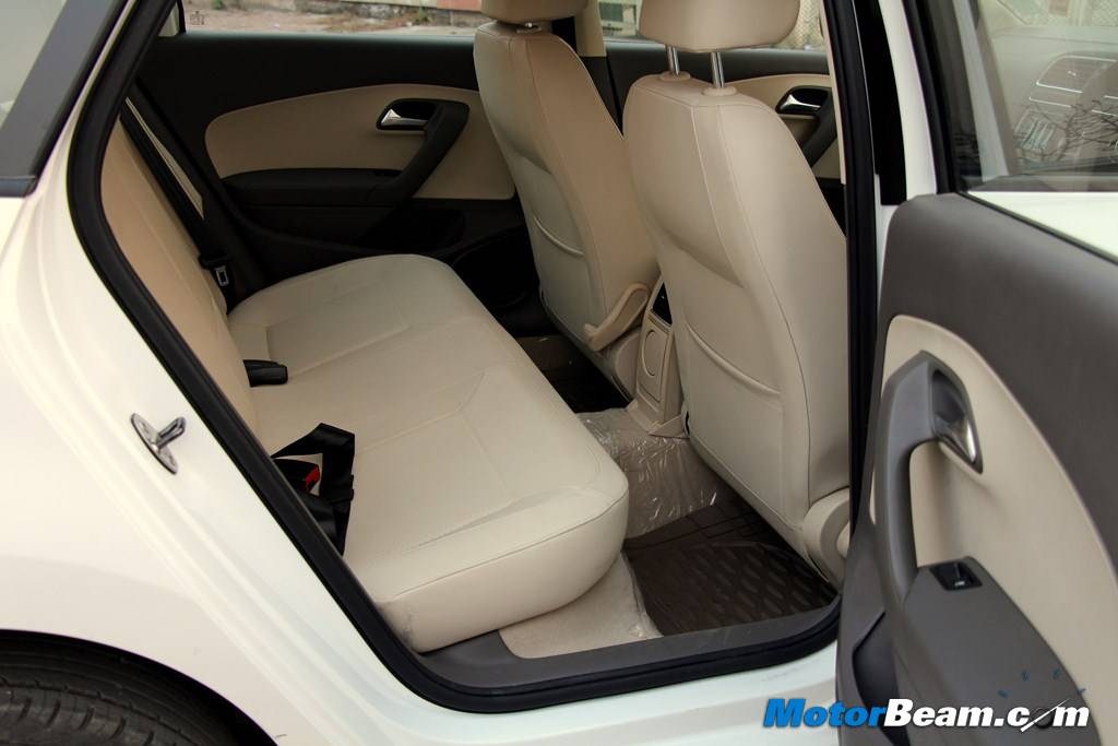 Interiors – Step inside the Volkswagen Vento with your eyes closed and feel the sublime quality inside the cabin, you will be overwhelmed with the level of fit and finish provided in this segment. Now open your eyes and you will feel dejected seeing the unornamented cabin. The simple yet quintessential layout is carried over to the interiors just like the exteriors of the Vento and there are some premium touches of chrome. There is ample storage space for knick knacks inside the cabin but the rear legroom is relatively limited. Third passenger in the middle would feel uneasy due to the high hump. The boot is sizeable for good amount of luggage. The Vento comes with decent but short list of equipment when compared to the Verna and City. Some of the features include ABS, dual airbags, rear AC vents, parking sensors, tilt and telescopic steering wheel, multimedia system with USB, AUX and Bluetooth connectivity, climate control air conditioning, etc.