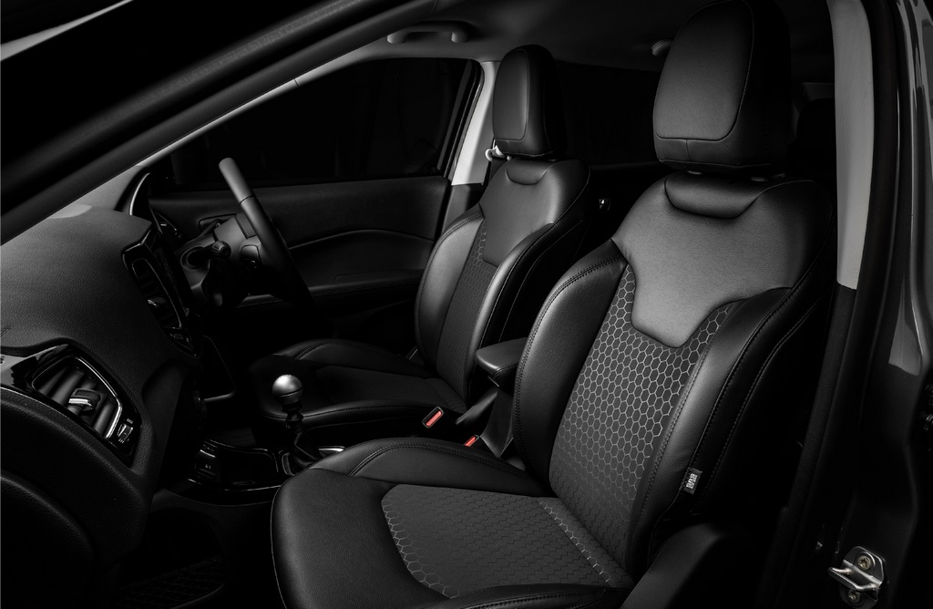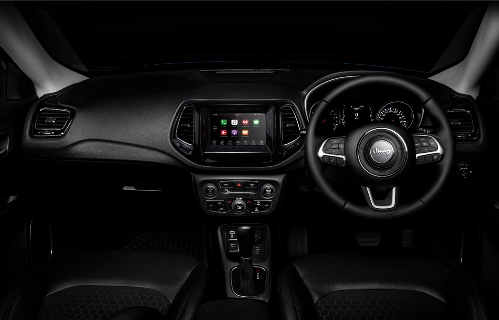 Inside, the Jeep Compass Night Eagle gets black ‘Techno Leather’ seats and gloss black accents throughout, like the centre console surround and ac vent surrounds.