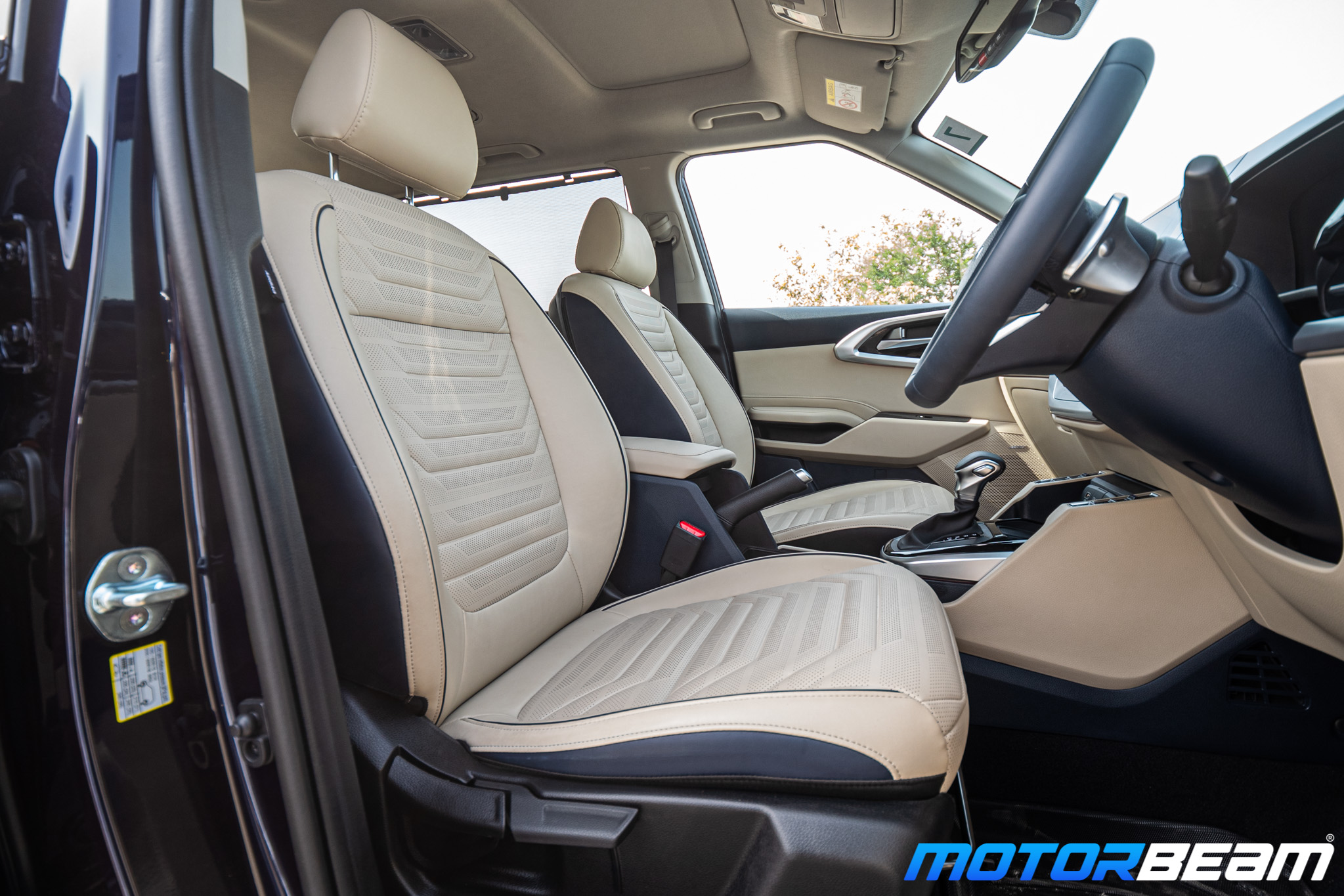 Performance – The Kia Carens comes with three engine options – two petrol and one diesel, and here’s where there’s a massive differentiation with the Alcazar. The first petrol engine is a 1.5-litre NA unit making 115 PS and 144 Nm and this can be had with a 6-speed MT only. We didn’t get a chance to sample this variant at the drive. The second petrol engine is again the familiar 1.4-litre turbo unit delivering 140 PS and 242 Nm, with either a 6-speed MT or 7-speed DCT and we drove the latter. The mill delivers very good performance and is quite punchy. Sure, some lag is felt lower down but the engine more than makes up for it in the mid-range as the Carens delivers all the power with a good sense of urgency. The AT also gets Eco, Normal and Sport driving modes which alter the engine’s performance but there wasn’t a world of a difference when we did our VBOX tests. The Turbo DCT did 0-100 km/hr in 10.81 seconds in Eco mode, 10.26 seconds in Normal mode and 10.24 seconds in Sport mode.