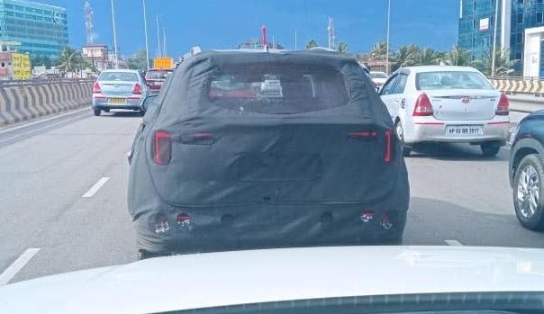 Kia Sonet facelift spotted with new alloys, new tail light design