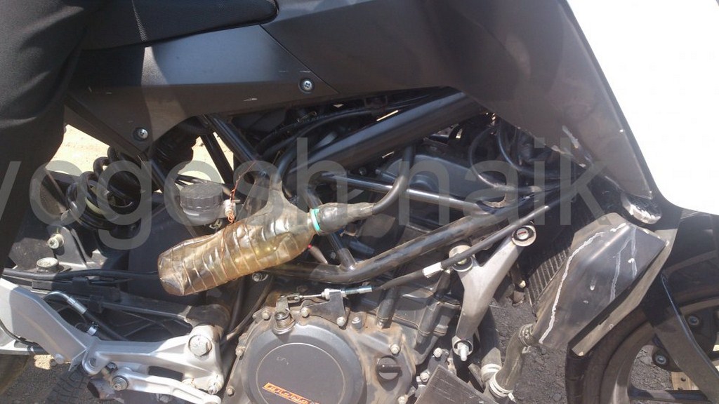 The KTM Duke 390 is powered by a 4-stroke, liquid-cooled, single-cylinder 373.2cc fuel injected engine with a DOHC layout. The engine is capable of producing a maximum power output of 44 PS at 9500 RPM with 35 Nm of peak torque at 7250 RPM, mated to a 6-speed manual gearbox. As you can see from the spyshots, the bike features upside down front forks and a monoshock rear suspension. The Duke 390 will also be sharing some elements with the upcoming Pulsar 375, which is expected in 2014.