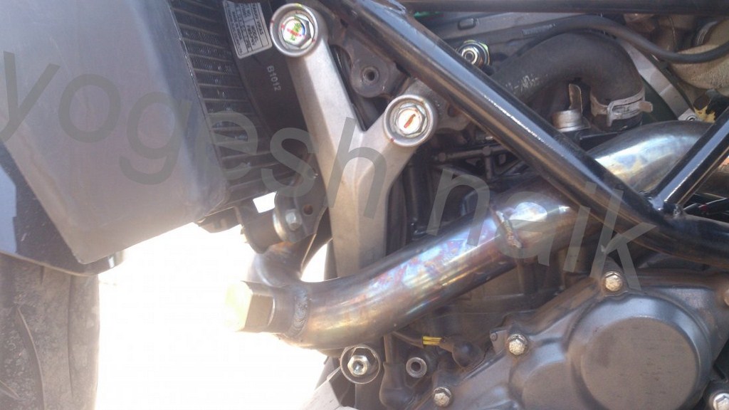 KTM had unveiled the performance oriented, Duke 200’s big brother, the Duke 390 at the 2012 EICMA show in Milan last year. The Duke 390 has been launched in UK and is expected to hit Indian shores in the month of June this year. The streetbike has been spotted testing recently in Pune and the spyshots reveal ABS sensor on the rear disc brake, Metzeler tyres, Bybre brakes, crankcase mounted oil filler cap with a changed head show. Apart from the changes, the Duke 390 looks similar to its younger sibling, Duke 200.