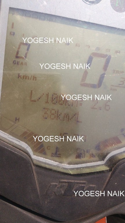 The instrument cluster picture of the spied 390 Duke shows a mileage of 38 km/l, which is hard to believe as the Duke 200 returns around 30 km/l. One can expect the 390 Duke to return 25 km/l in city riding conditions although while cruising on the highways, the mileage can increase a bit. The real time mileage indicator reading is said to vary drastically depending on throttle input.