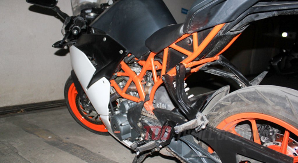 First showcased at the 2013 EICMA in Milan, the KTM RC 390 was spotted on test sans any camouflage in the country. One of the most awaited launches in the performance two-wheeler segment, the RC 390 shares its underpinnings with the street fighter Duke 390 and is scheduled for a July launch this year. Designed by automotive design house KISKA; these clearer spy shots showcase the complete design details of the RC 390 that gets very funky looking dual projector headlamps with LED daytime running lights in the front and an aerodynamic fully faired design.