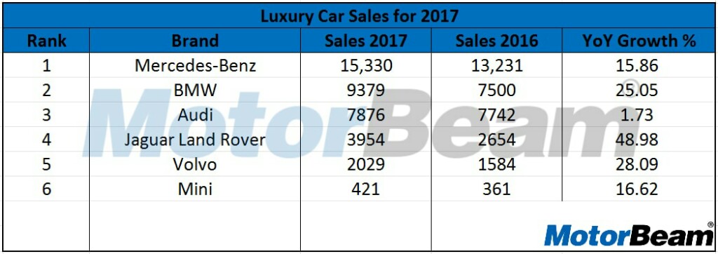 Last year, the luxury car segment of India went through a lot of ups and downs. Despite showing positive growth as compared to 2016, most luxury automakers will agree that demonetization and GST initially acted as roadblocks in an otherwise smooth journey of the industry’s growth. Surprisingly, luxury car sales in India grew at a rate of 17% as compared to the previous year which provides some much-needed breathing space for automakers.