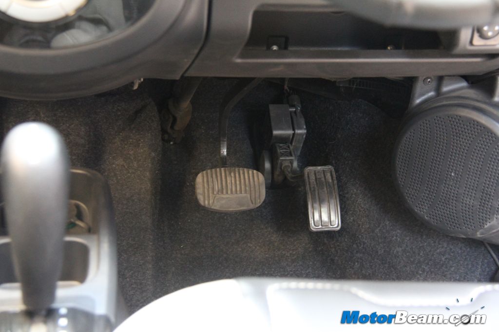 Left – Due to the small foot well and the intruding front wheels inside the cabin, when you step on the accelerator completely, you tend to hit the floor. Right – Built quality could have been better, especially for a car which will mostly be exported.