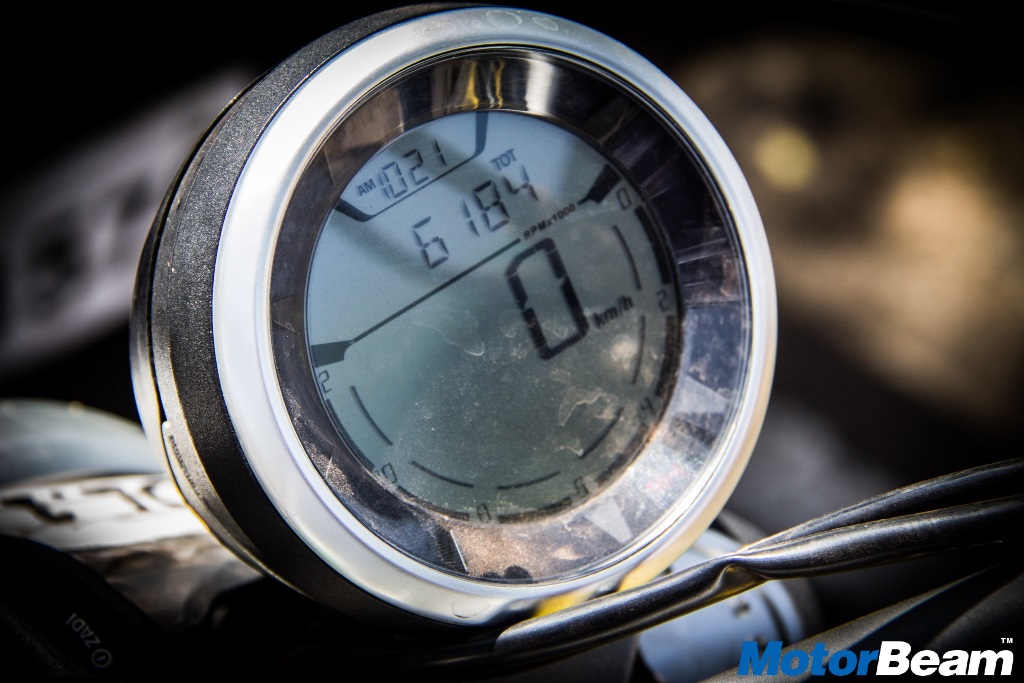 Instrument Cluster and Switchgear – There’s not really much to compare between the Scrambler and the Thar as the former just blows away its competition when it comes to technological sophistication. The compact LCD console is at par with the analogue-digital one in the Mahindra. Both consoles show an odometer, trip-meters, speedometer, tachometer, indicators for high beam, check engine light and turn indicators. The stuff that the Scrambler misses out on is a fuel gauge which is replaced by just a low-fuel light. What’s additional in the Thar being a four-wheeler is the seat belt warning as well as 4WD mode and 4Low mode that light up according to the mode selected.