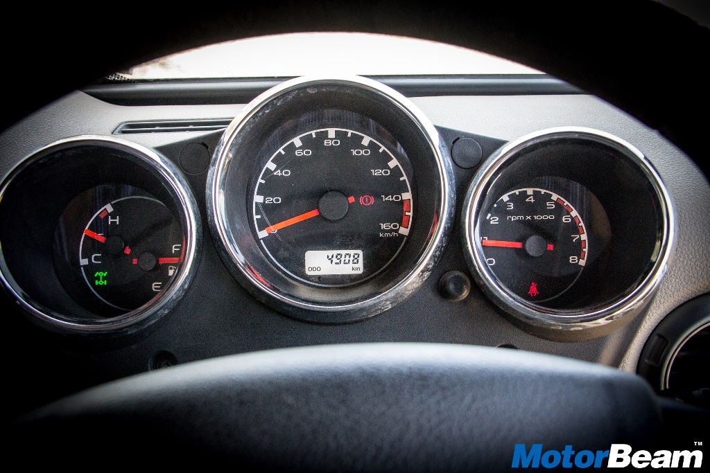 Ergonomics – Yes, there’s no comparison, we know. But let’s get some perspective here. The Mahindra Thar is a hardcore off-road machine. So obviously it is no lounge on the inside, while the Scrambler isn’t the most comfortable motorcycle in its class either! The Thar has acceptable levels of comfort as the seats are large enough and fairly adjustable. The visibility from the driver’s seat is good with fewer blind-spots, however, some portion of the speedometer does get hidden because of the steering wheel. One thing that irritated me the most in traffic was that while shifting into the second or fourth gear, you always tend to hit the hand-brake; a bizarre design flaw.