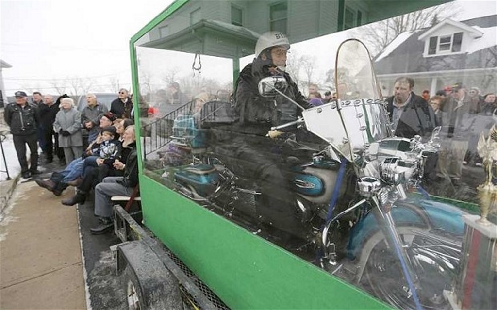 The person has been sharing his last wish with his family members for years and believes that his motorcycle has helped him retain his sense of adventure. The project wasn’t easy and required an extra-large cemetery plot to accommodate a plexiglas casket for the person and his bike to be placed. He started the project himself by buying three extra burial plots next to his wife.
