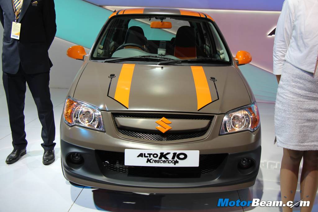 Maruti Suzuki has displayed the Alto K10 Krescendo at the 2014 Auto Expo. This is a customised version of the regular Alto K10 and we are not at all impressed with this customisation. There is only one word to describe the Alto K10 Krescendo – Weird ! The colour combination of brown and orange looks hideous. The fake wheel arches don’t gel well with the body.