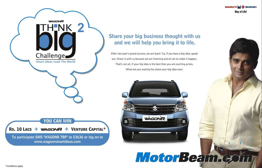 Maruti Suzuki has started Think BIG Challenge 2, a contest which will help people with big business ideas to fulfill their dreams. If you have an idea, a business plan and all the qualities required to make it big in life, but did not know how to go about it, then this is the platform that you have been waiting for. The WagonR ‘Think Big Challenge2’ is going live in 19 cities nation-wide and will be a huge amalgamation of Print, Radio, Online, Television, on-ground activities and Prizes worth over 5 Million INR for you spread across different stages.