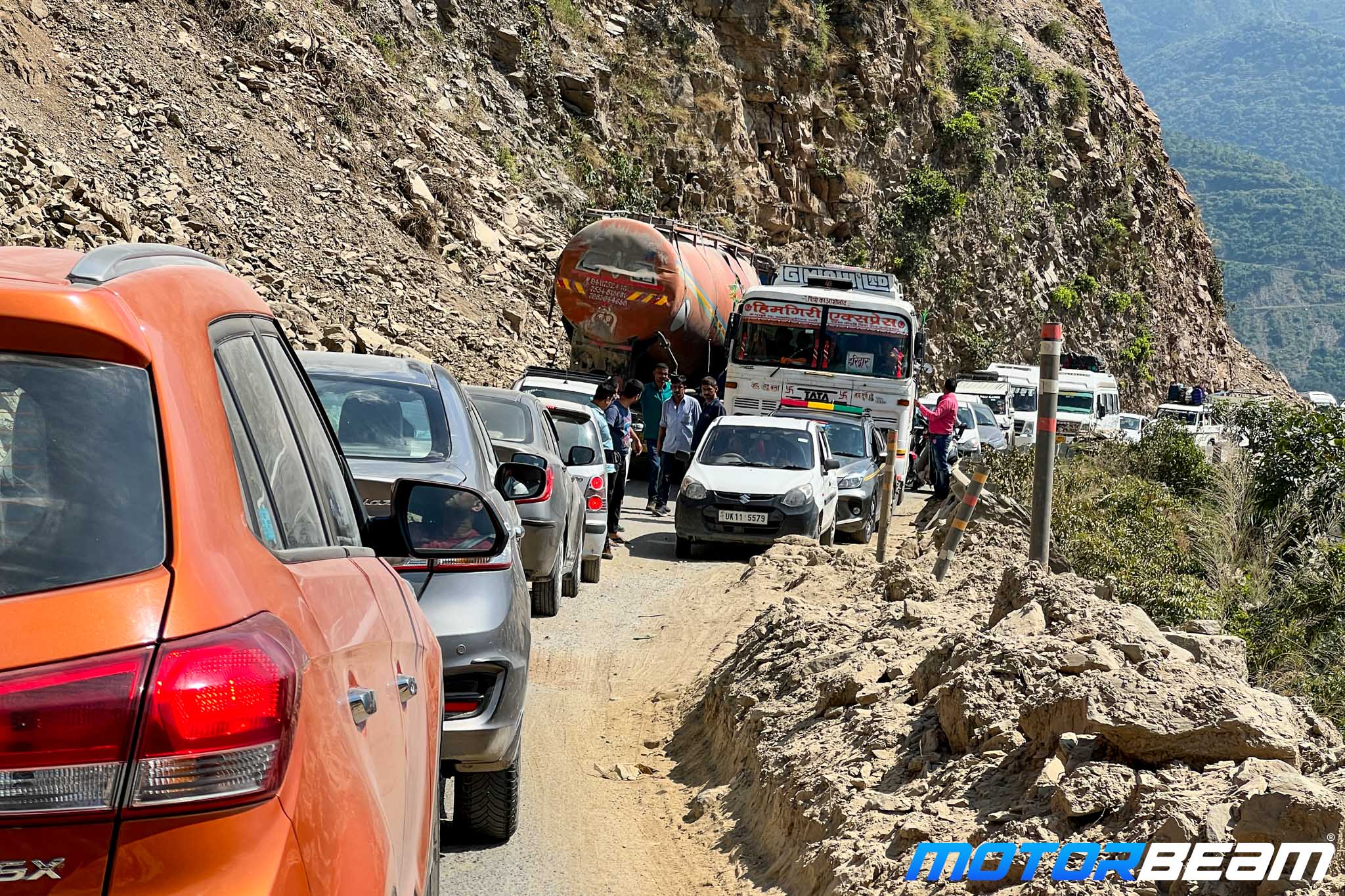 As we crossed about 100 kms the next day, we had stopped for over 5 times! The roads were tarmac till Ukhimath but there were landslides all over causing only a single lane to work at a time. This went on for quite some while but not a single person complained as they were really comfortable in the Brezza. Amazing weather, good music and very balanced car which had been taking broken tarmac with ease let everyone keep their cool. The best part over here was once you get stuck in traffic there’s no one overtaking you as it’s only a 2-lane road.