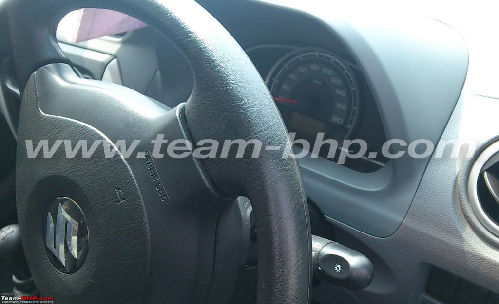 The other pictures reveal the Ford Figo inspired front end and Hyundai Eon inspired tail lights. The vehicle seems to be built to a price, which the quality levels of the car clearly show. The LXi model is equipped with full wheel covers and even a driver side airbag. The interiors of the Alto 800 are an improvement over the regular Alto F8 but still lack in quality and design. The power window switches are placed in the centre, which are inconvenient to operate.