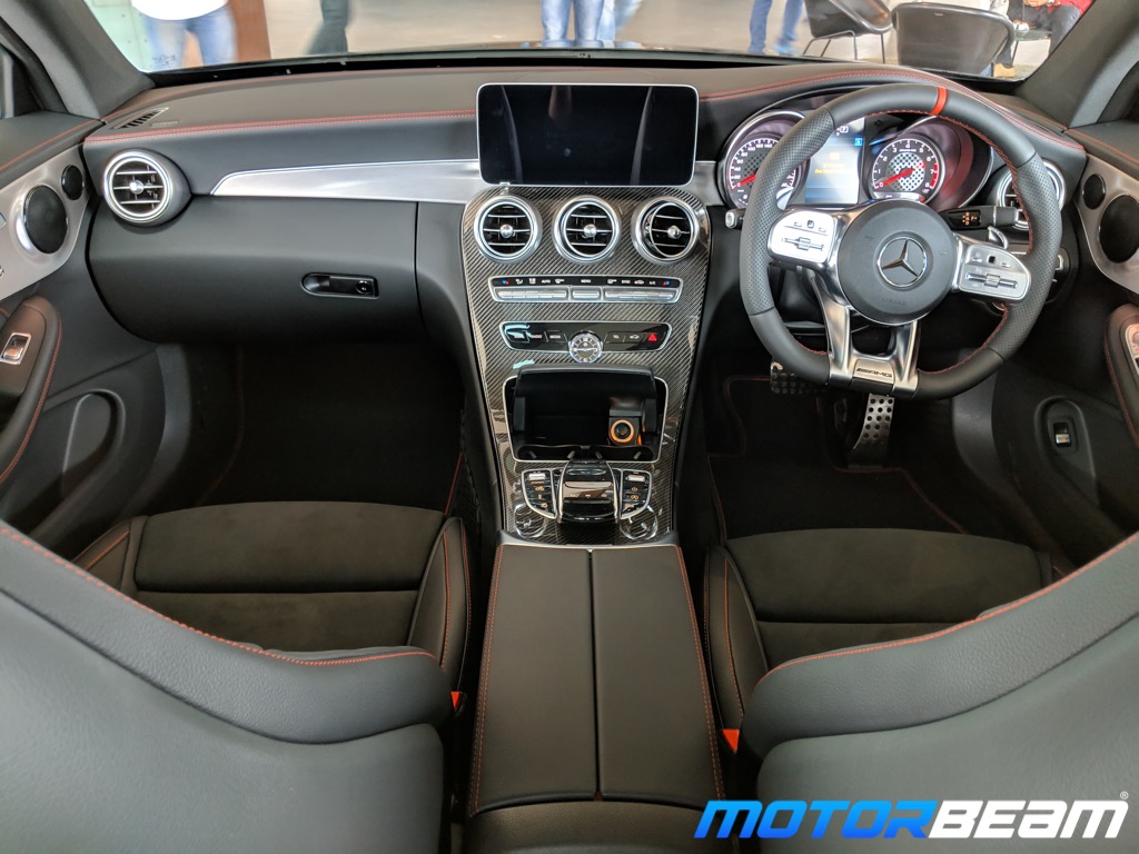 The interiors have Artico man-made leather or Dinamica microfibre upholstery with red top stitching which is again matched by the doors and the dashboard featuring Artico man-made leather with red stitching. The pedals are made of aluminium and come with black studs. Trim elements come with black piano lacquer with longitudinal-grain aluminium. The black roof liner and the red seat-belts further add to the sporty look of the the Mercedes-AMG C43 Coupe. There is a fully digital instrument cluster along with a 12.3-inch diagonal comes with three AMG specific display viz. Classic, Sport and Supersport.