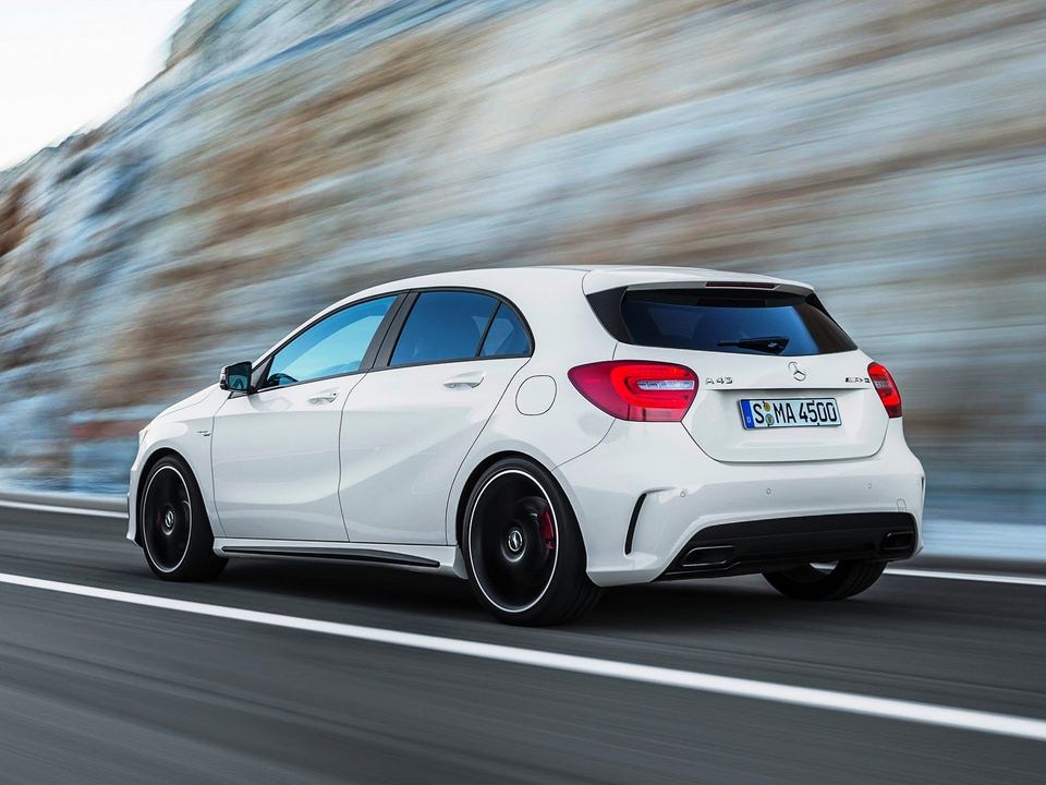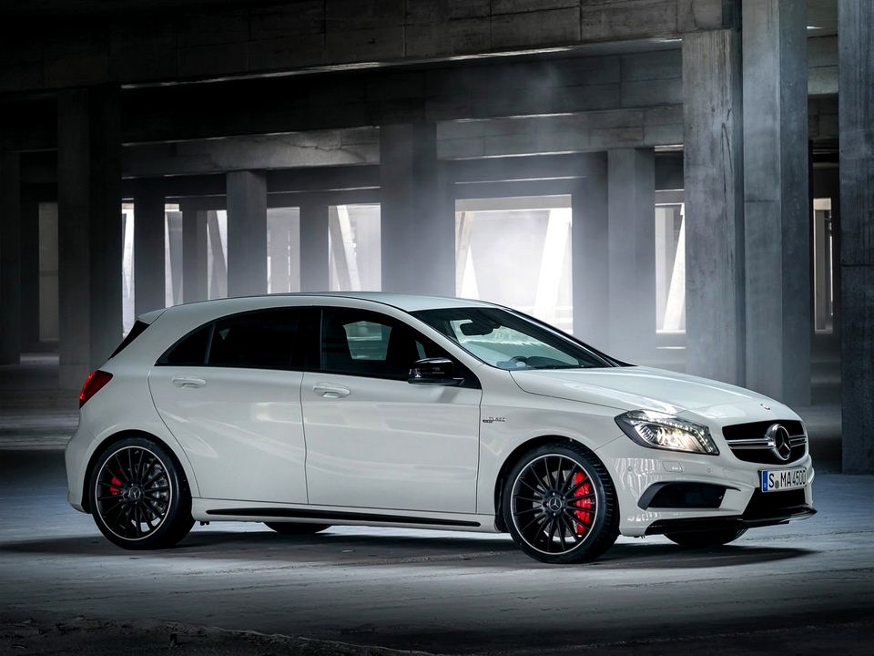 The Mercedes-Benz A45 AMG will be unveiled at the Geneva Motor Show in March 2013, but this is a preview of the amazing new performance hatchback from Mercedes. This car, based on the humdrum A-Class, features many changes to the whole vehicle to make it more powerful, faster and involving to drive. The A45 AMG features a 350 BHP engine. It is a highly tuned and re-worked version of the 2.0-litre turbocharged Mercedes-Benz petrol engine, which produces a mind blowing 450 Nm of torque.