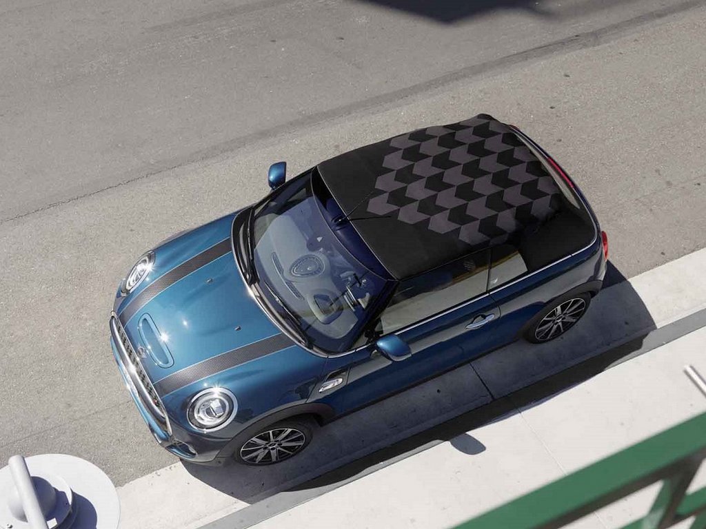 Available in Deep Laguna metallic exterior colour, that MINI says was specially developed for this edition, the car also features a geometric pattern on the soft-top, special 17-inch Scissor Spoke 2-tone alloys, side scuttles and door sill finishers in the Sidewalk design, and bonnet stripes with pinstripes.