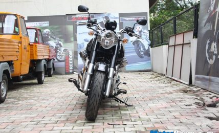 The Moto Guzzi V9 is a mid-size light cruiser bike available in two versions – Bobber and Roamer. The former has a dark themed styling with blacked out details and no chrome elements. It also comes with sportier panels and chunkier tyres. It has mild difference in the handle bar positions as well relatively.