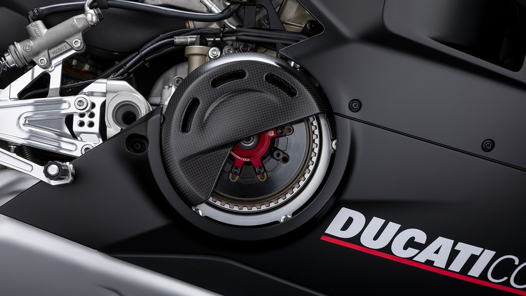 But, it has a slipper dry clutch, like the V4 R and Superleggera. There is an open carbon fibre clutch cover as well, which is a part of the track pack.
