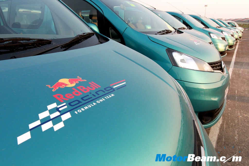 Renault and Nissan are global partners and Infinity, a brand owned by Nissan also happens to be a sponsor of the Red Bull Racing team. Red Bull racing has been using the NV200 and NV400 as their support vehicles globally and Nissan’s Light Commercial Vehicle Business Unit provided the Red Bull team with ten all-new Evalia vehicles to support race operations at the Indian Grand Prix. With Red Bull Racing team logos, the Nissan Evalia will played a vital role in supporting Red Bull Racing by transporting equipment and staff at the Formula One Indian Grand Prix.