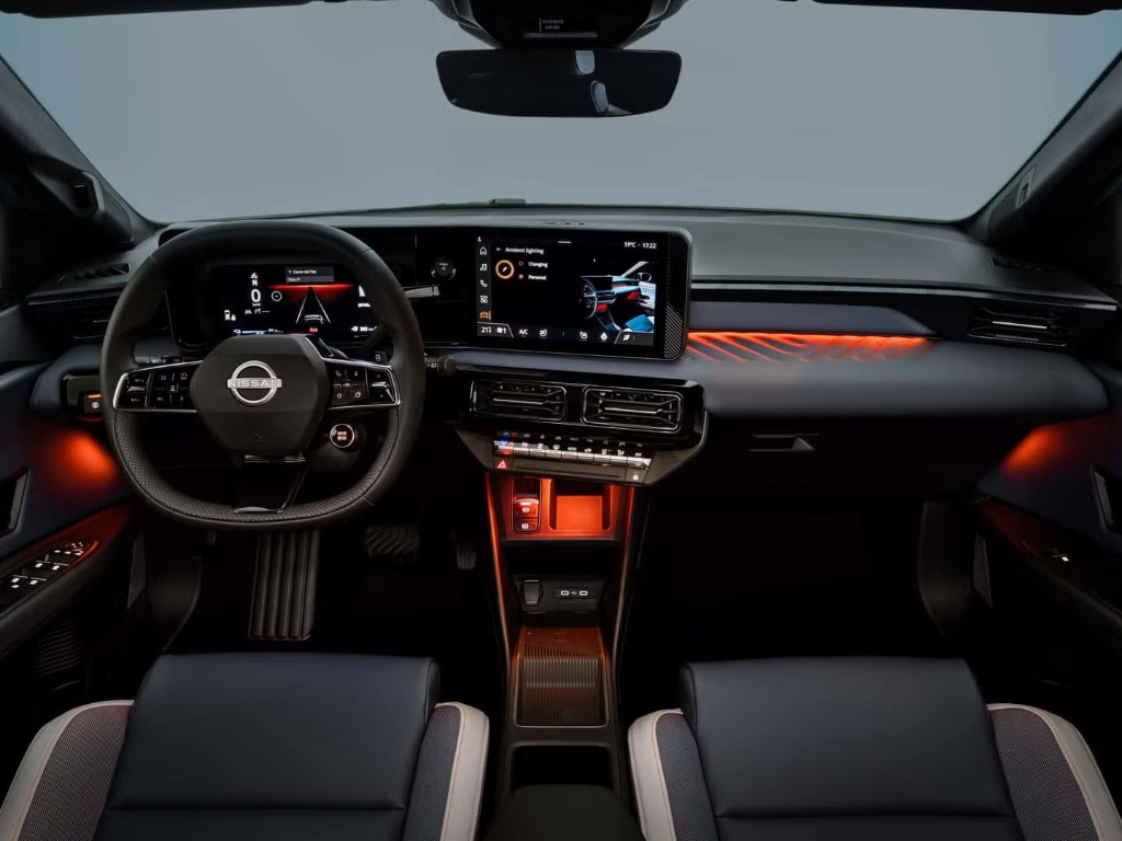 Two battery packs, 40 kWh and 52 kWh, will power the Micra. The 40 kWh battery pack produces 122 HP and 225 Nm of torque and a range of 308 Km (WLTP). The top-spec 52 kWh battery pack produces 150 HP and 245 Nm of torque and a range of 408 Km.