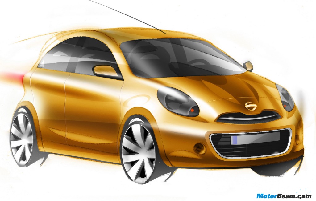 Nissan Motors has unveiled the first sketch of its global compact car Micra, which will be manufactured in five countries including India, China, Thailand and two more locations that have not been announced yet. Nissan will roll out three different variants of its hatchback and sedan models, as well as a multipurpose vehicle (MPV), from five plants across the world. The production of the Nissan Micra will start in May, 2010.