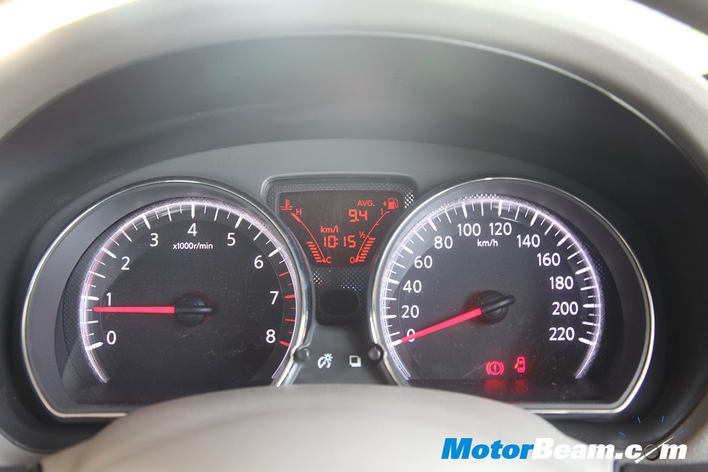 The Sunny is not a scorcher but offers sufficient mid range and high end punch with fair amount of power lying in the low end of the revmeter making it an ideal city car which can also double as a strong contender for the highway. Though we did not get an opportunity to do a timed 0 – 100 run, we expect the Sunny to cross the line between 13.5 – 14.5 seconds. The MID reading on the fuel efficiency was 9.2 kmpl, which is astounding since we were continuously driving around 4000 – 5000 RPM. Around 12 kmpl is a practical figure one should expect in the city. Hitting 100 kmph is not much of a problem but if you want to go beyond 130 kmph, then you need a large open stretch of road as the engine starts running out of breath. We hit a top speed of 145 kmph, but realistically speaking, that was with four people on board and a boot full of luggage. In ideal conditions, this figure should be considerably better.