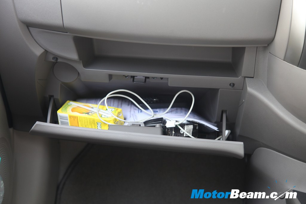 Glove box is one of the smallest I have seen in a while. A small niche above it is a handy place to keep cellphones etc