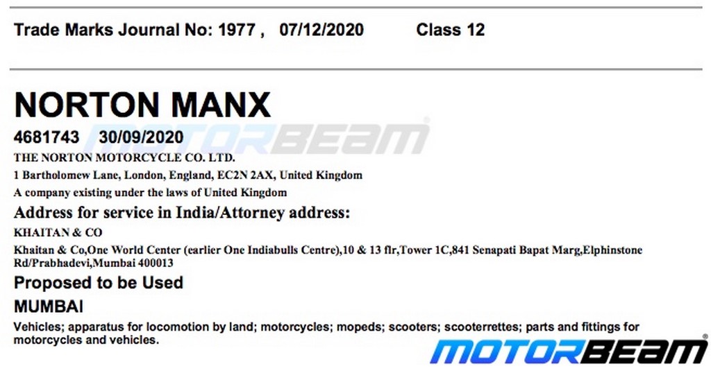 Norton Motorcycles Trademarks Titles Of 4 India-Bound Bikes