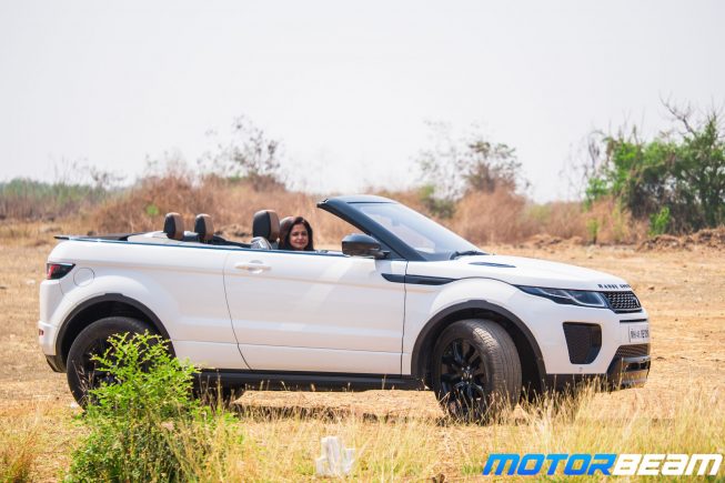 Alas, all the make up went in vain as the camera crew told me to keep the roof down while driving as the Evoque convertible looks the best that way. Out on the highway, the wind in the air feeling was just amazing and the smooth petrol engine meant that I could definitely hear more of the wind than anything else. Surely the refinement is excellent but I like the way the motor gets mood swings when you get into the higher rev range, sounding beautifully sporty.