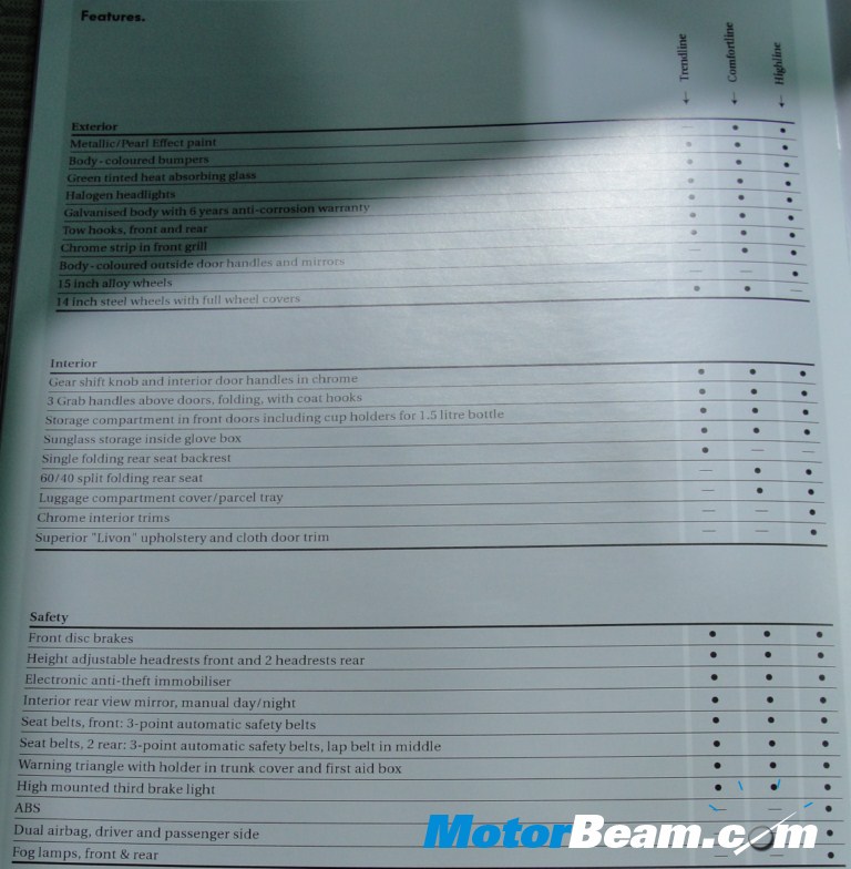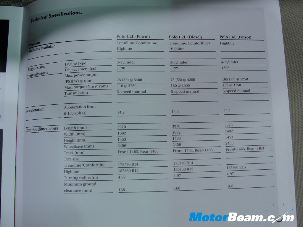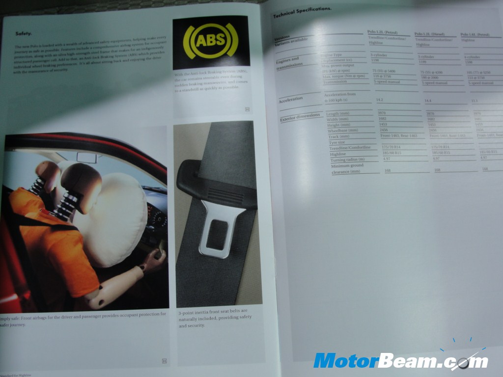 The Volkswagen Polo is still a couple of months away but everything you ever wanted to know about the car including its features, transmission, engines, technical specifications, variants are there in the brochure. Heck, the brochure even has the 0 – 100kmph time of all the versions. The 1.6 petrol reaches 100kmph in just 11 seconds, the 1.2 petrol in 14.2 seconds, whereas the diesel is the slowest of all taking 14.4 seconds to a ton. If you want to read just the specifications and features, head over here.