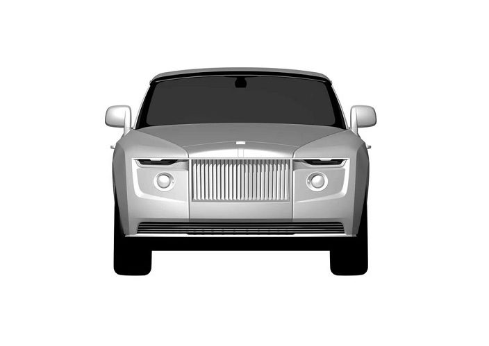 That is how the car in the patent images look, like a land yacht, a stellar looking one at that. The front of the car looks like the Phantom VIII but with very slim headlights, smaller grille and a wider air dam. There are two very lights below the main ones as well.