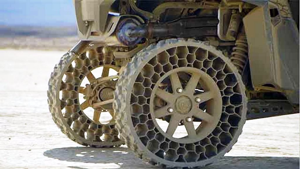 Polaris, a company specializing in All Terrain Vehicles (ATVs) has come up with new “Airless” tyres, primarily for off-road use, which completely eliminates the possibility of a flat tyre which is a huge inconvenience especially while being away from civilization. This tyre was originally developed for military applications and later was even found useful for off-road use. Polaris will most probably launch this revolutionary Non-Pneumatic Tyre (NPT) early next year.