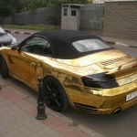 If you have enough money or you love Gold too much you wouldn’t mind making your car ugly. You just need to buy some gold and plate it on your car. Just as how a Russian has done on his Porsche 911 (996) Cabriolet.