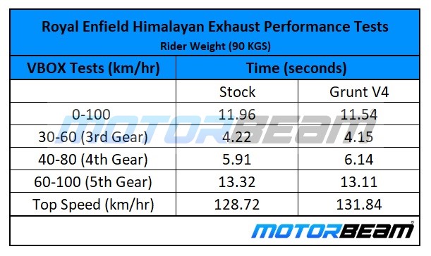 The difference was not major but it was evident that the Himalayan performed better than stock. To get the numbers right we got the VBOX test done for top-speed as well as in-gear acceleration. The mid-range performance had improved significantly but the low-end torque dropped slightly. Hitting the ton became faster by half-a-second while the in-gear acceleration had good results too. Although the low-end torque had an adverse effect in some in-gear acceleration runs as it was too low for the speed, we could achieve a slightly higher top speed than stock.