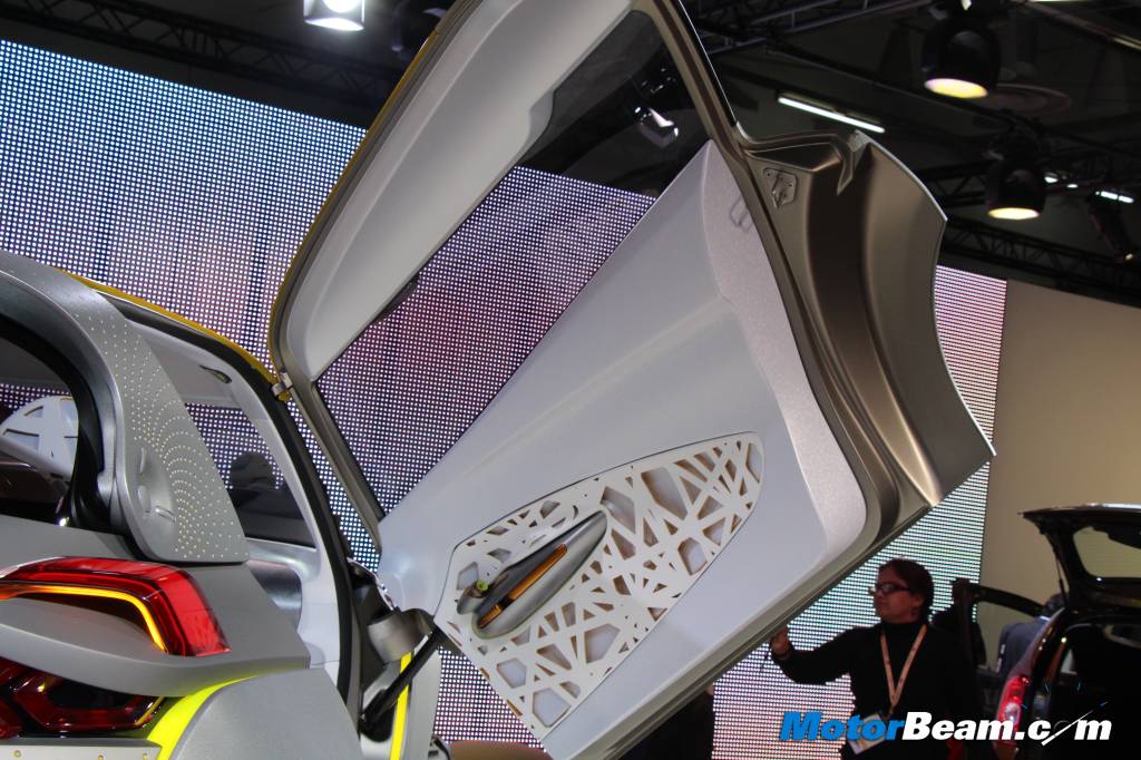 The Renault KWID concept is powered by a 1.2-litre petrol engine which is turbocharged and mated to a dual clutch transmission. It is a ZOE ready vehicle which means it can receive batteries to become an electric. The car has quite a few technologies in it with the Flying Companion being the highlight. This basically let’s you operate the helicopter in two modes which shows a pre-programmed flying sequence or a one paired with a GPS location. The car does look out of the world in person which means production chances are bleak.