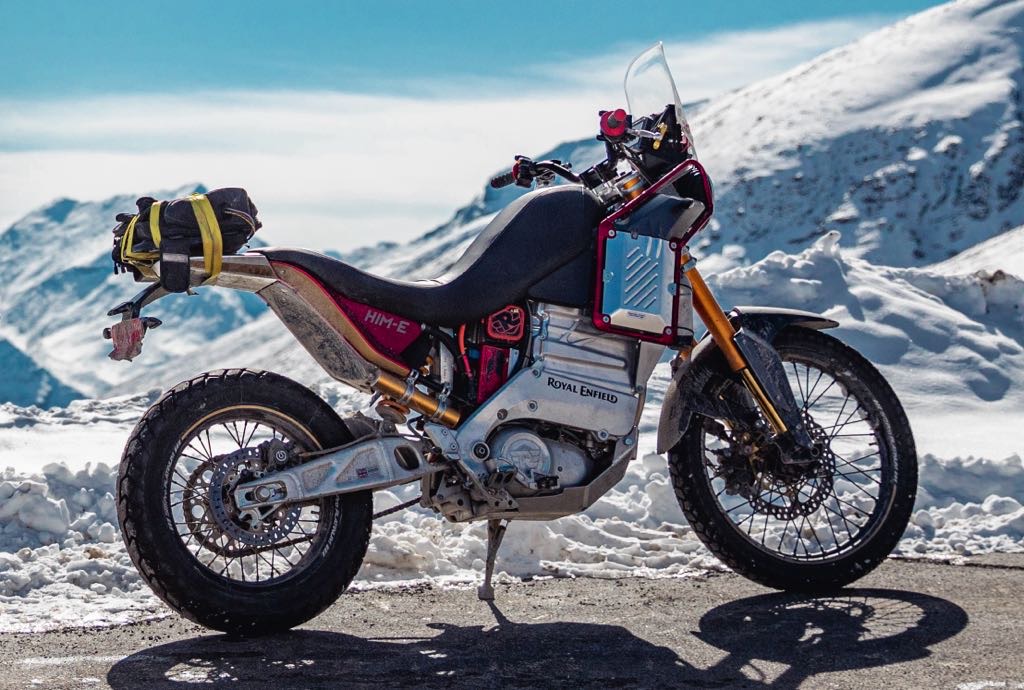 The Himalayan EV concept is a pure electric adventure motorcycle prototype. It is a test bed to develop the next generation electric powertrain. The prototype has undergone rigorous testing, including wind tunnel assessments and trials across various terrains.