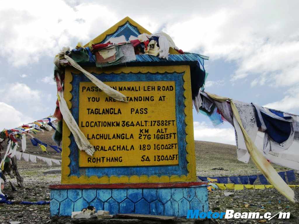A small snack break and regroup at the town of Rumtse at 14000-feet is done after which we set off to cross the second highest motor able road in the world, Taglang La (‘La’ meaning ‘Pass’) at 17,582-feet. This is second only to the Khardung La, which at 18,379-feet, is the highest motor able road in the world. The road leading up the mountain to the Taglang Pass is one hell of a riding experience with good tarmac surface and brilliant corners with bone chilling cold and some snow scattered about to give company. The top of the pass is amazing with not much more than a small temple, the typical Tibetan flags and breath taking views. As it is not advisable to stay for an extended period of time at such high altitude we set off quickly. We rode down and at a special flat piece of land we lined up for the Himalayan Odyssey official picture and then made our way off-road on a dusty and sandy path to our campsite 3 kms away from the main road. Riding on this surface is a lot of fun trying to keep a decent pace while keeping the bike from slipping under one’s seat.