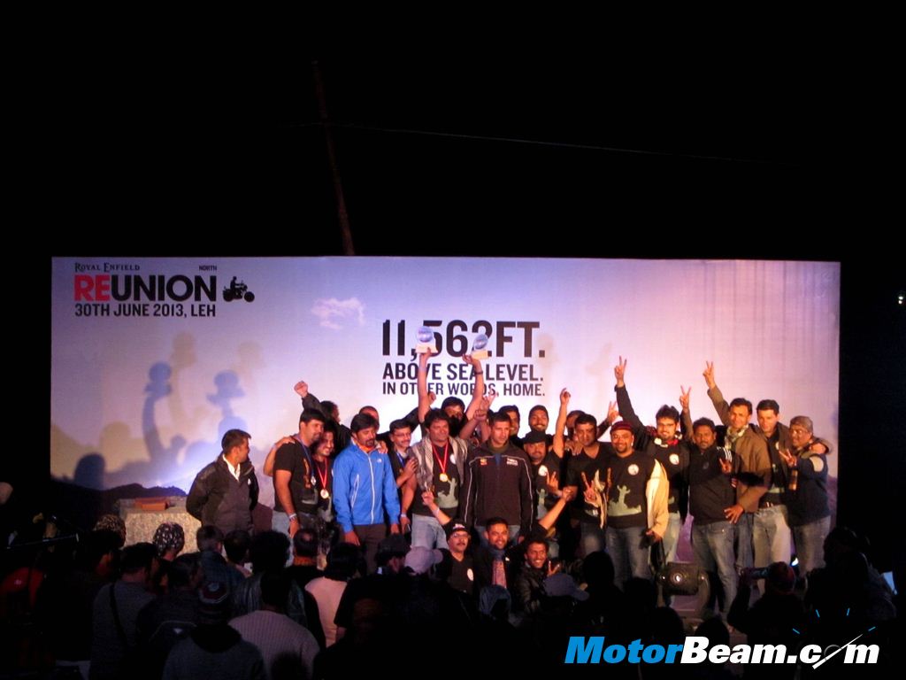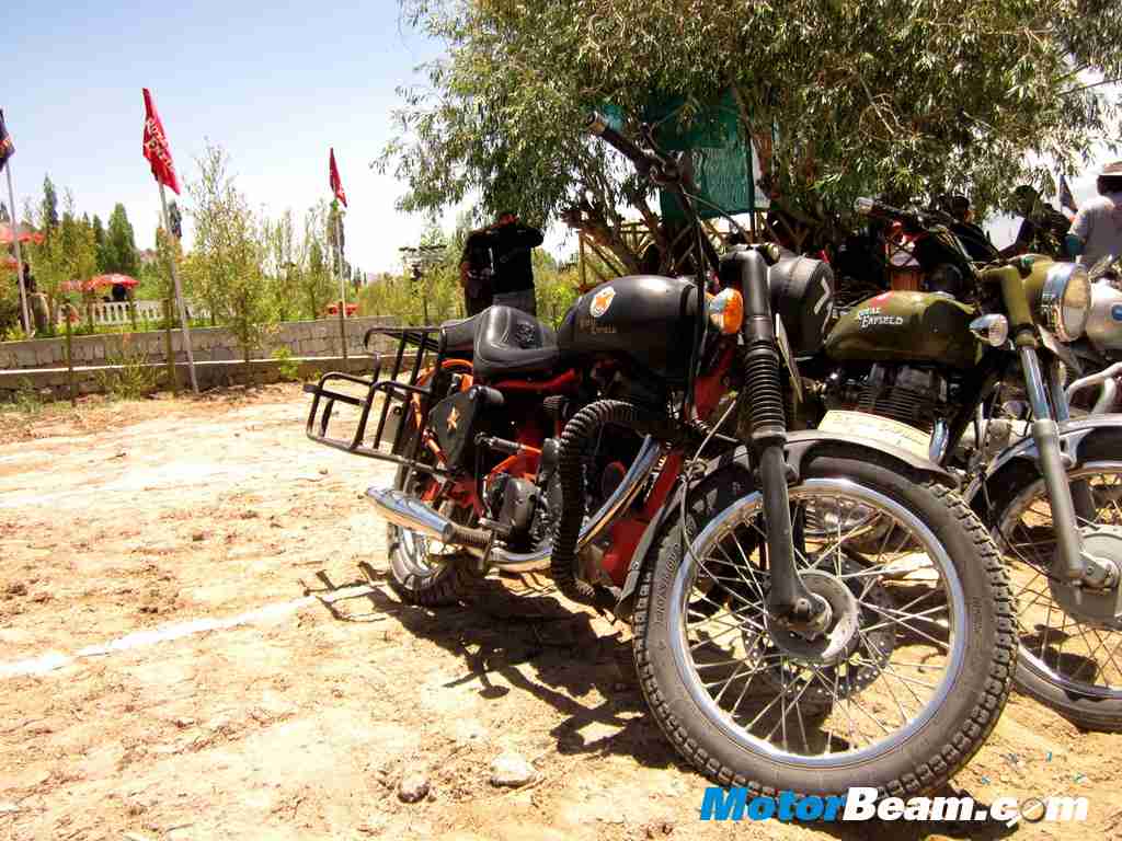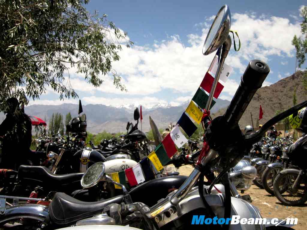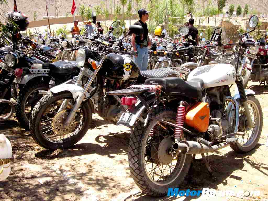 MotorBeam joined the action at Leh for the ‘highest’ Royal Enfield Reunion and to ride in the second leg of the Odyssey. The reunion was a big affair with over 120 attendees in the lap of snow clad mountains and was big on views, big on action, big on energy and big on celebration. It started at about noon with a stage set up in the centre of the venue with the DJ setting the mood with some grooving tracks and a big screen showing videos and clips from earlier events like Odyssey, Rider mania and other reunions. Many events and competitions were organized like slow racing, fastest disassemble and reassemble of bikes and the hugely popular arm wrestling competition. The party went on till late at night when the winners of the competitions were announced.