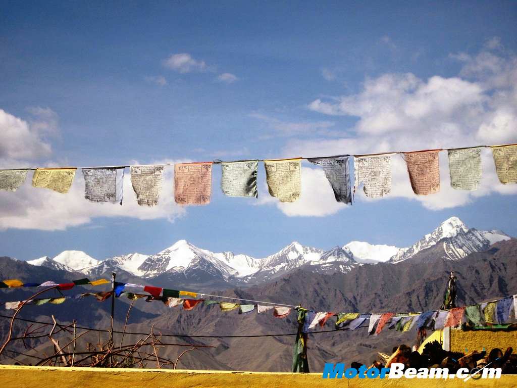 The parking lot was awash with a lot of very interesting Royal Enfields, some immaculate old Bullets to very well modified newer bikes for the difficult adventure that is the Odyssey. Finally we were allotted the bike we would be using for the Himalayan Odyssey, a sparkling new Thunderbird 500. This meant only one thing, exploring the town of Leh and its surroundings as well as getting to know our ‘bird before we set off the next day. The town of Leh has very rustic beauty and is a typical Tibetan style town with the Gompa or Shey Monastery perched on a hill above the town. But it has all the modern amenities and luxuries like an airport, good hotels and cafes along with traditional Tibetan stuff. The road leading to state capital of Sri Nagar is an exceptional piece of tarmac with great views and has the famous ‘Magnetic Hill’ on the way.