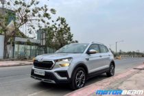 The front rake angle seems to be too much and this won’t be an easily flickable bike in the city traffic. The tear-drop shaped tank looks big though. The test mule features a crash guard and auxiliary lamps.